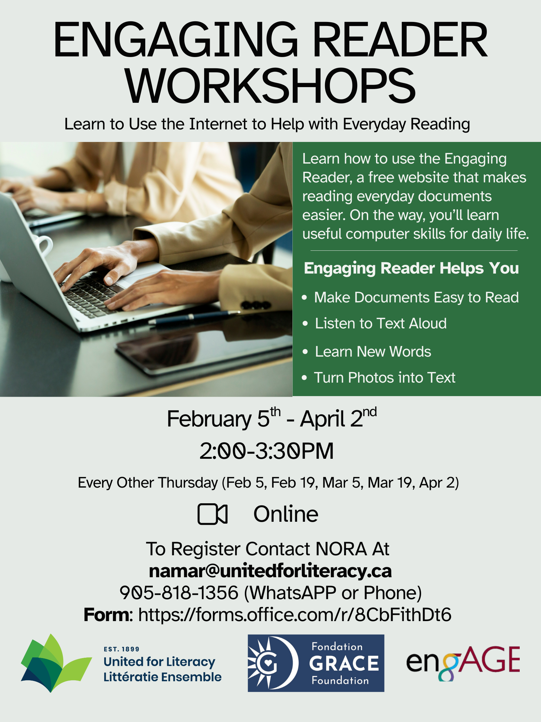 I’m pleased to introduce Jake Zaslav, the Founder of the Engaging Reader, a new digital reading and engagement tool developed in partnership with Concordia University’s EngAGE, Centre for Research on Aging. The workshops will be facilitated live by Jake Zaslav and give learners hands-on experience with the tool along with developing important computer skills they can utilize in everyday life.