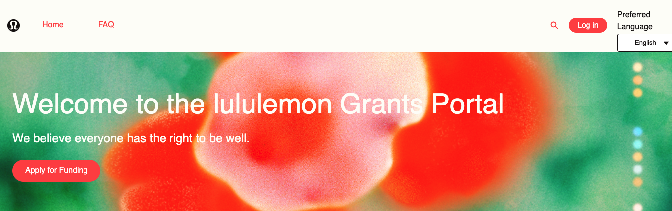 The lululemon Community Wellbeing Grant—formerly known as Here to Be—provides funding to community-led non-profit organizations around the globe that are advancing the wellbeing of their communities through creating equitable access to movement and mindful programming. Interested organizations can apply for up to $50,000 USD, which should not exceed 40% of their most recently completed fiscal year’s operating budget.