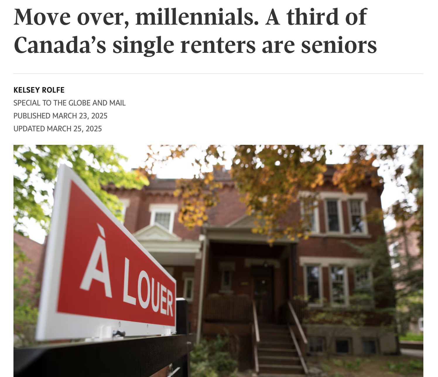 [News] Move over, millennials. A third of Canada's single renters are seniors