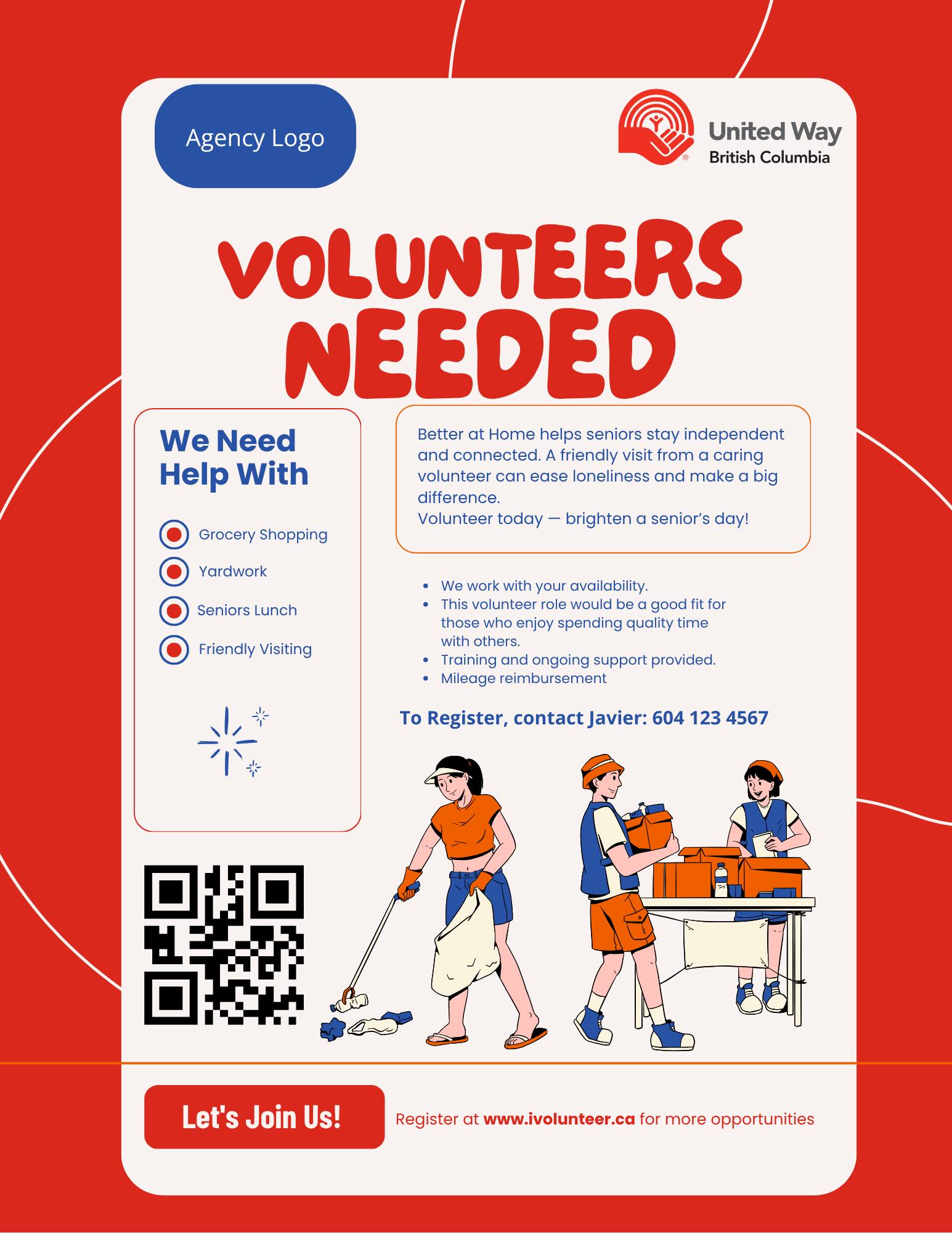 If you need assistance posting volunteer opportunities on iVolunteer, please visit CBSS Partner Support Guide: Posting Opportunities on iVolunteer - Healthy Aging CORE BC or contact JavierB@uwbc.ca