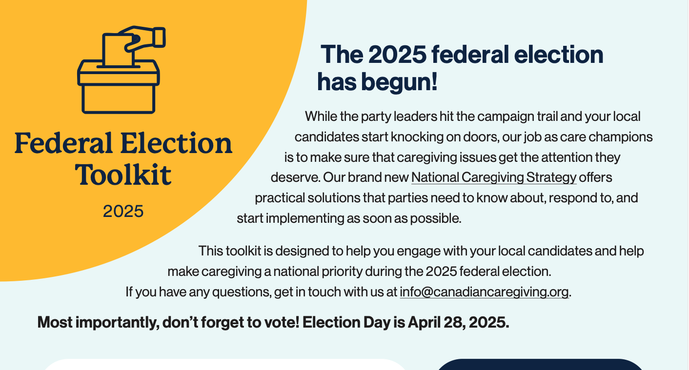 This toolkit is designed to help you engage with your local candidates and help make caregiving a national priority during the 2025 federal election.