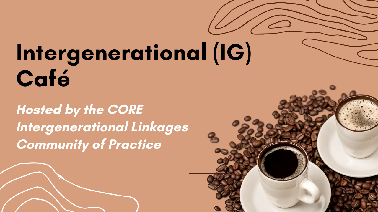 In addition to attending the regular Cafés and Event learning sessions the CoP holds, you are welcome to post resources, upcoming events, and more related to Intergenerational relationships and Intergenerational Programming by joining us in the Intergenerational Linkages CoP CORE Alberta Group. This Group is a Nationally focused group hosted on the CORE Alberta Platform. This virtual Community of Practice is intended to be community-driven, supported by key facilitators and capacity builders to deepen engagement, build new ideas and connect those with a passion towards intergenerational relationship building and community development.