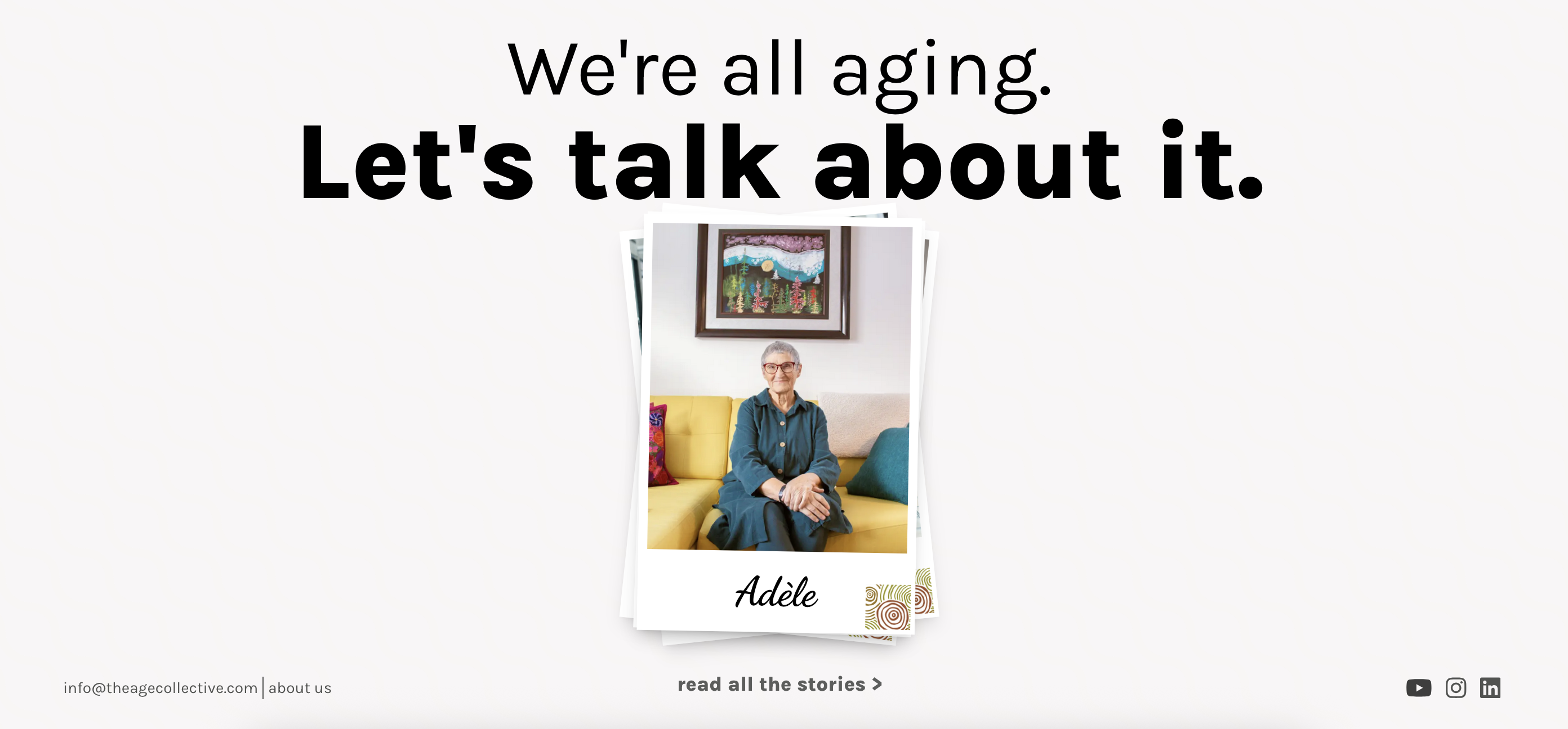 Established in 2021, The Age Collective (TAC) is a community-driven initiative working to reimagine how we think, talk about, and experience aging. Through storytelling, art, and conversation, we bring people of all ages together to challenge ageism and celebrate the depth, complexity, and the significance of growing older.